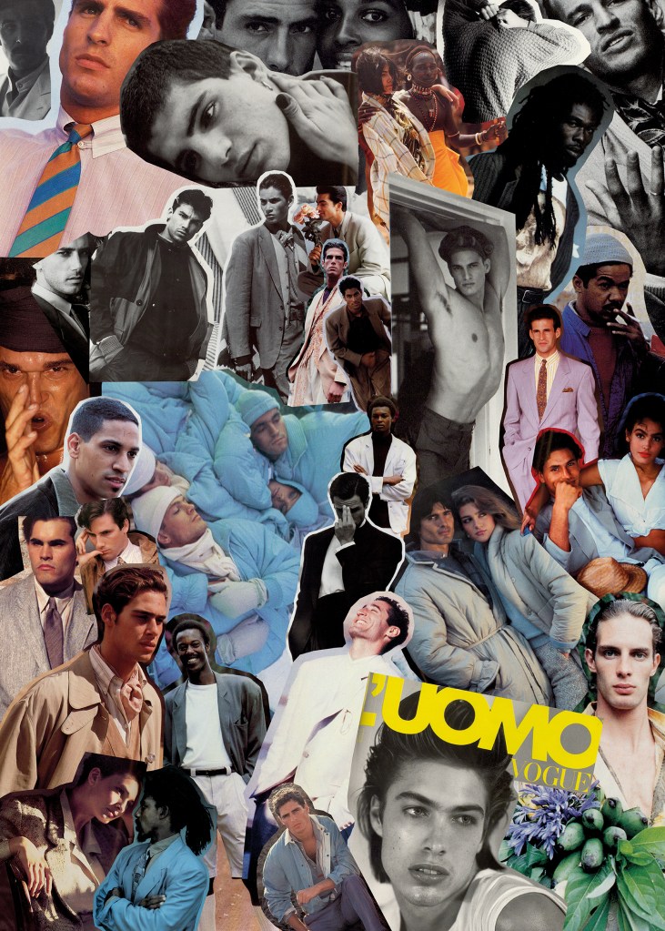 The cutouts of gorgeous models from the L'uomo Vogue Magazine. Selected out of the archive and put into one magnificent unit. From the monthly published magazines starting in 1980 until 1996.
